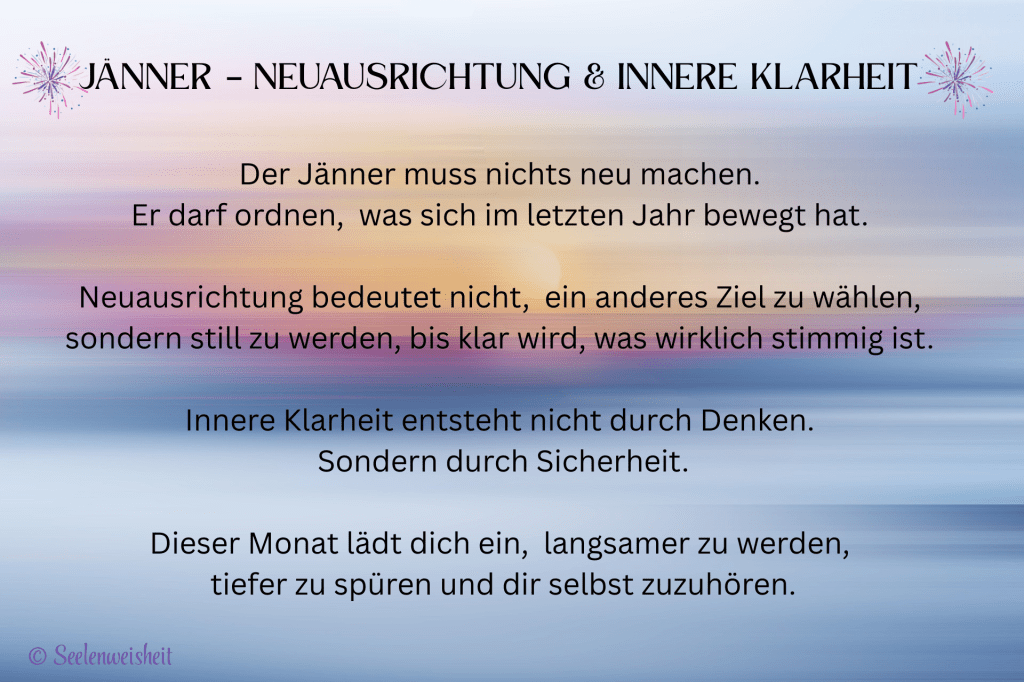JÄNNER – Neuausrichtung & innere Klarheit Teilen mit: Auf X teilen (Wird in neuem Fenster geöffnet) X Auf Facebook teilen (Wird in neuem Fenster geöffnet) Facebook Drucken (Wird in neuem Fenster geöffnet) Drucken Gefällt mir Wird geladen …